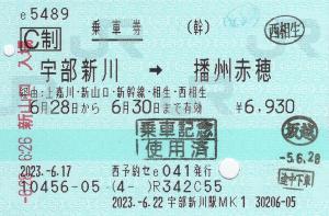 宇部新川駅MK1(MV50) 2023/06/22 | 宇部新川駅改札付近のみどりの券売機プラスにて発行の入場券です。