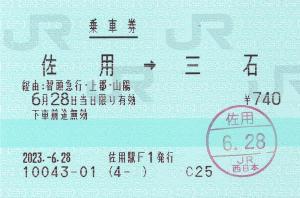 佐用駅F1(MR52) 2023/06/28 | 佐用駅改札付近のみどりの窓口にて発行の乗車券です。
