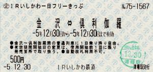きっぷ売り場内、3つある窓口のうち左端の端末で発券したフリーきっぷ(全線版)です。