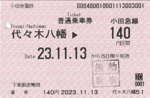 発行情報なし | 改札付近の定期券売り場で発売しているテレホンカード型のフリーきっぷです。発券日は2023/11/11です。