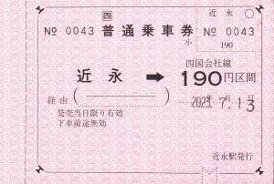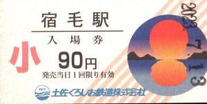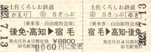 ローソン宿毛平田町店発売の宿毛発着くろしおSきっぷ自由席用硬券です。