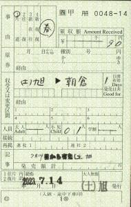 改札付近窓口、簡易委託乗車券です。(ちなみに九州ではエドモンソンサイズ)