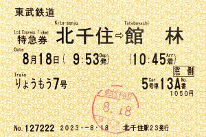 | 発行情報なし | | Haiki_mars さんの投稿 | 北千住駅発行の特急券です。