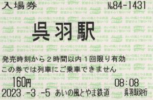 発行情報なし | 呉羽駅改札付近の窓口にて購入の入場券です。 |