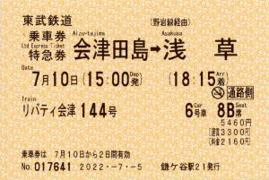 乗車記念印は東武浅草駅。 |