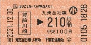 | 発行情報なし | 豊前川崎駅ホームにある自動券売機にて購入のエドモンソン式乗車券です。