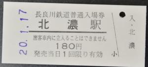 | 発行情報なし | | 北濃駅の硬券入場券ですが、販売はこの駅のためこの駅の情報として投稿しました。(北濃駅は自動券売機すらない完全な無人駅) |