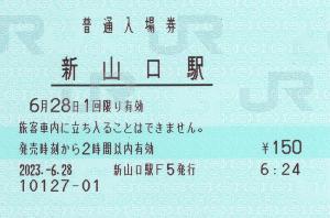 新山口駅改札内新幹線乗り換え改札付近のみどりの窓口にて発行の入場券です。