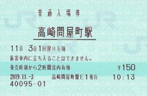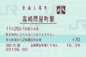 高崎問屋町駅発行の入場券です。