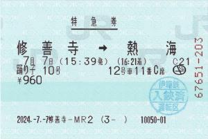 特急券は修善寺踊り子/三島からの新幹線に限って発売します。