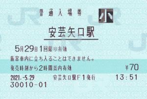 安芸矢口駅改札付近のみどりの窓口発行の入場券です。