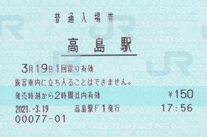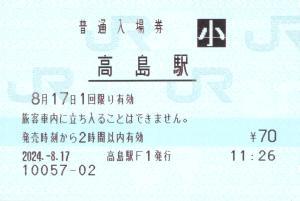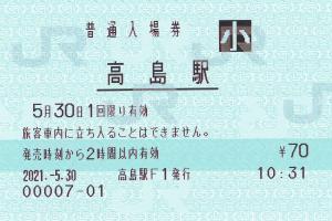 高島駅改札付近みどりの窓口にて発行の入場券です。