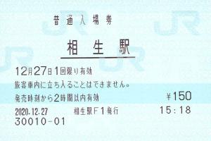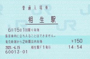 相生駅改札付近のみどりの窓口にて発行の入場券です。