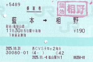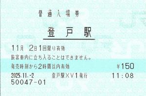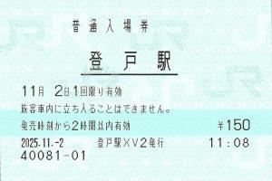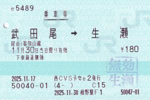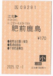 券売機が2台並ぶ左側。紫色の券売機(カード・コード決済可能。)。九州内特急モードで購入すると、85mm券となります。印字良好。