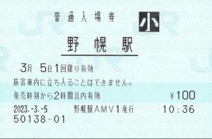 | 発行情報なし | | 改札付近に設置のMV50で発券される短距離券タイプの入場券です。 |