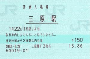 三原駅改札内、乗換口のみどりの窓口にて発行の入場券です。