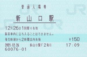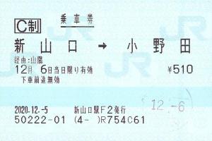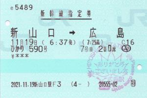 新山口駅みどりの窓口入口から向かって左から2番目の窓口(新山口駅F3)発行の指定席券です。