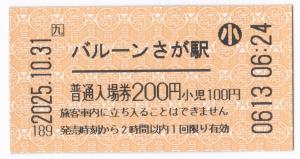 2025年バルーンフェスタ開催に伴い、常備往復券のみ臨時発売。