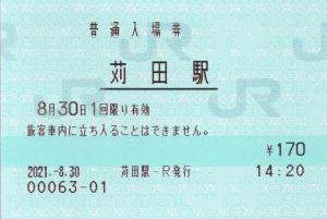 下曽根駅改札付近みどりの窓口発行の入場券です。