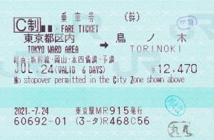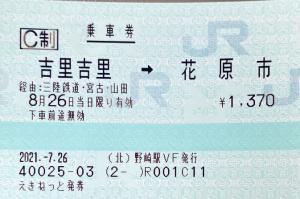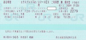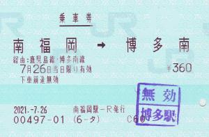 新下関駅南口のみどりの窓口発行の乗車券です。