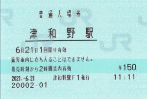 津和野駅改札横、みどりの窓口(津和野駅F1)発行の入場券です。