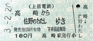 高崎→佐野のわたし 硬券乗車券