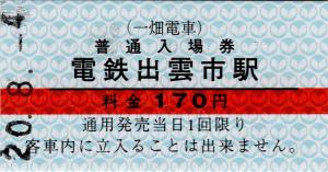 電鉄出雲市駅 硬券入場券