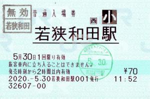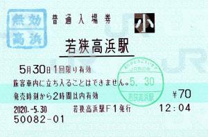 無効印が「高浜」となっていますが若狭高浜駅のものです。