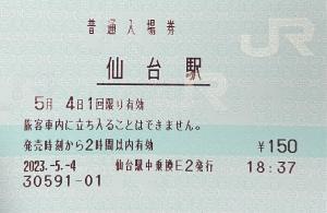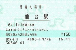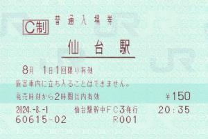 仙台駅の普通入場券です。
