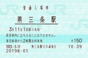 発行情報なし | 燕三条駅 乗車駅証明書 (大人)