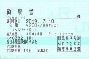 宇部新川駅改札付近のみどりの券売機プラスにて発行の乗車券です。