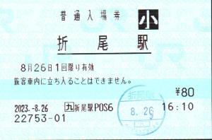 折尾駅窓口向かって左側の端末にて発行の入場券です。