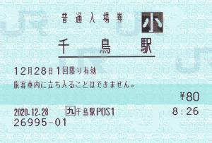 千鳥駅改札付近のみどりの窓口発行の入場券です。