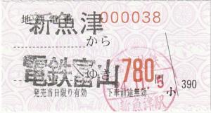 | 発行情報なし | | 感熱私鉄端末発券です。窓口設置個所は改札付近です。4年前にも購入しましたが、料金はその時と同じでした。 |