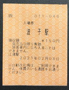 発行情報なし | 波子駅のJR西日本委託乗車券販売所販売の入場券です。