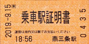 | 発行情報なし | 燕三条駅 乗車駅証明書 (大人)