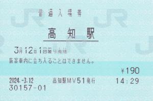 スタンプは無効印代わりの土佐くろしお鉄道車内検札印(宿毛駅は17:00以降無人となるため)