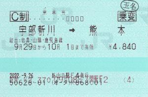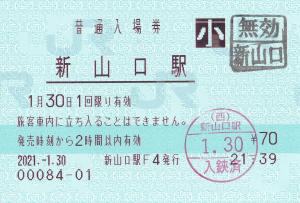 新山口駅改札付近みどりの窓口にて発行の入場券です。