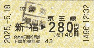 新宿マインズタワー改札の券売機で発行