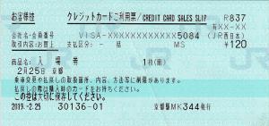MR52端末で発行のPOS入場券。