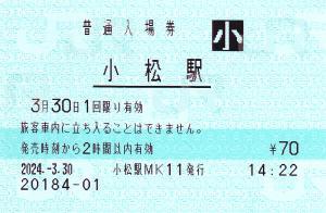 | 発行情報なし | | 硬券入場券です。有人窓口で発売中です。 |