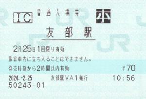 自動券売機発行の切符2024年3月15日で自動券売機での販売終了。