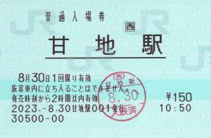 寺前駅改札付近のみどりの券売機にて発行の入場券です。