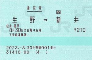 加古川駅の加古川線乗り換え改札にて発行の乗車券です。