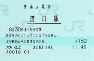 溝口駅改札付近のみどりの窓口にて発行の入場券です。