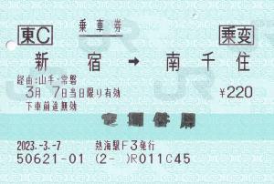 画像は、北改札の券売機並びMV50×2台のうち、左側(3号機)で購入したものです。