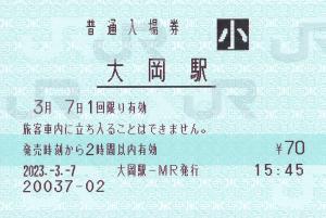 | 発行情報なし | | 改札付近に設置のMV50で発券される短距離券タイプの入場券です。 |