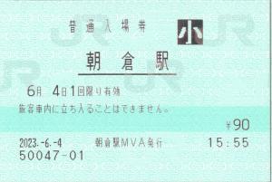阿知須駅改札付近の窓口にて発行の入場券です。