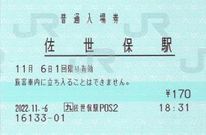 周船寺駅改札付近みどりの窓口にて発行の入場券です。
