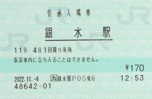 羽犬塚駅改札付近のみどりの窓口にて発行の入場券です。